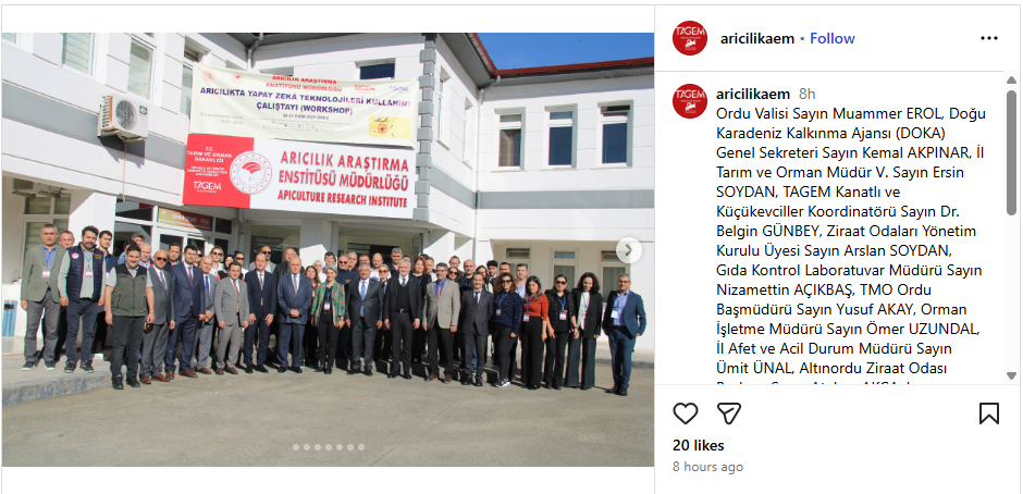 The “Artificial Intelligence in Beekeeping Workshop” was successfully held on October 30–31, 2025, at the Ordu Beekeeping Research Institute Directorate, supported by the Eastern Black Sea Development Agency (DOKA).